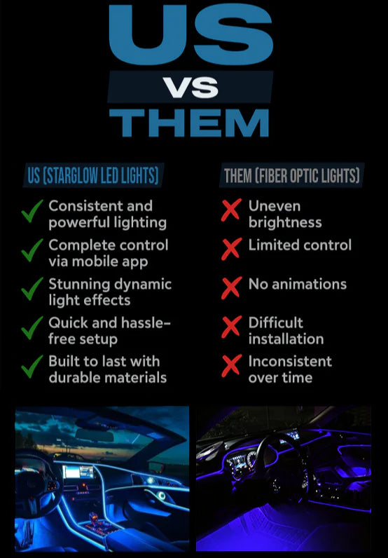 We designed the lights to enhance your car's interior without blinding the driver. You can also adjust the brightness to your comfort level.